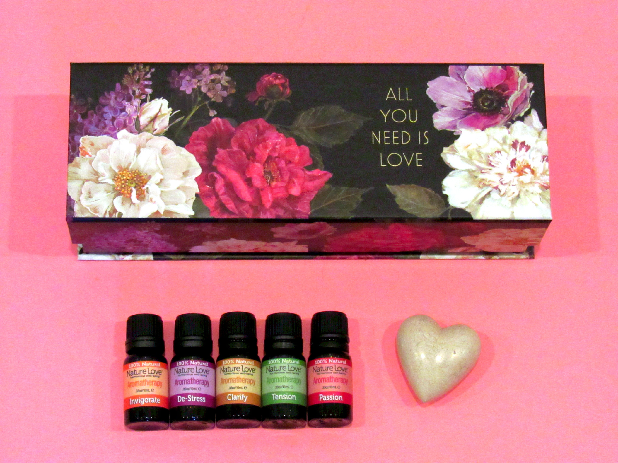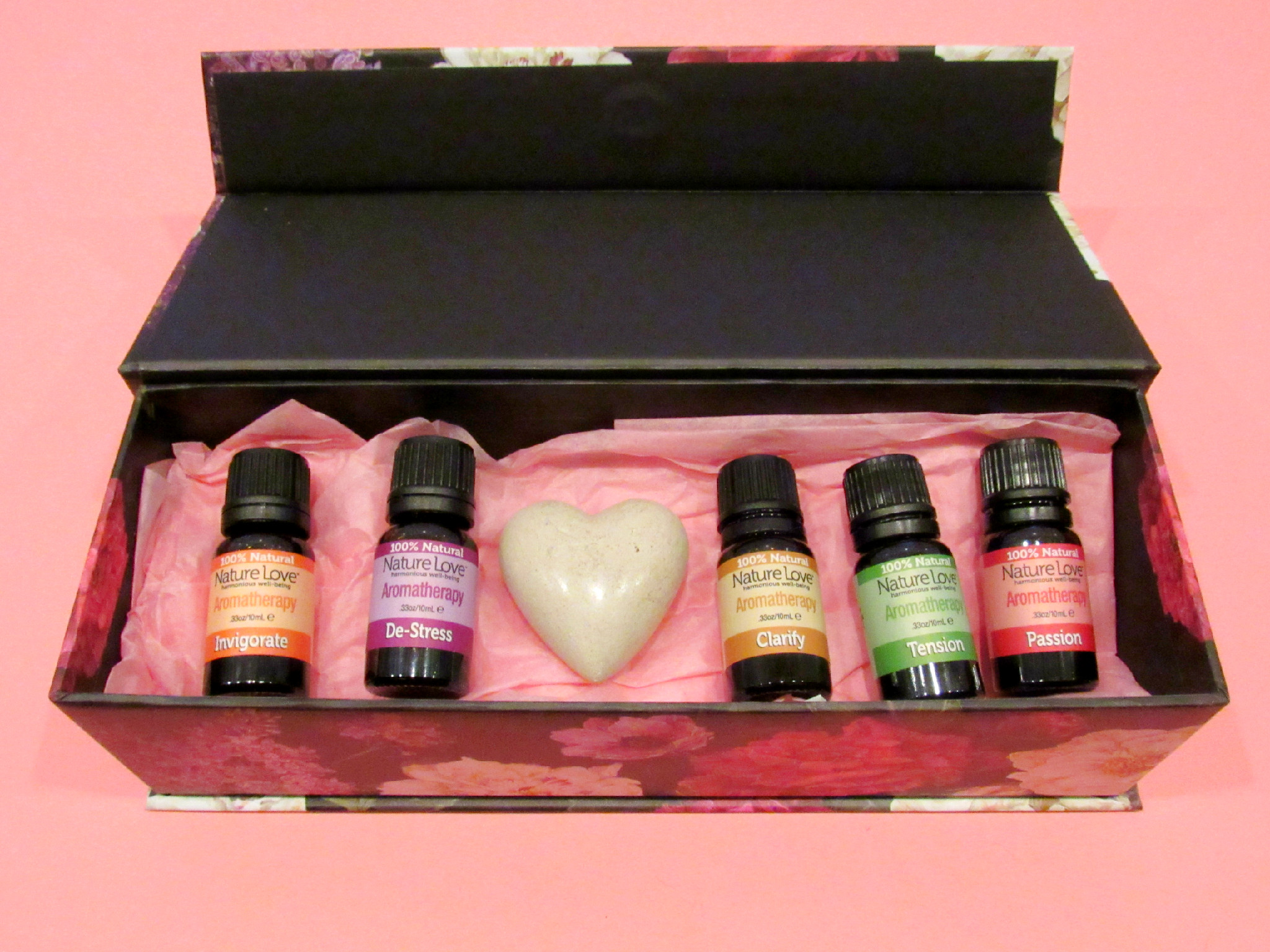 What you’ll need: gift box, essential oils set, tissue paper, heart shaped rock, raffia ribbon.