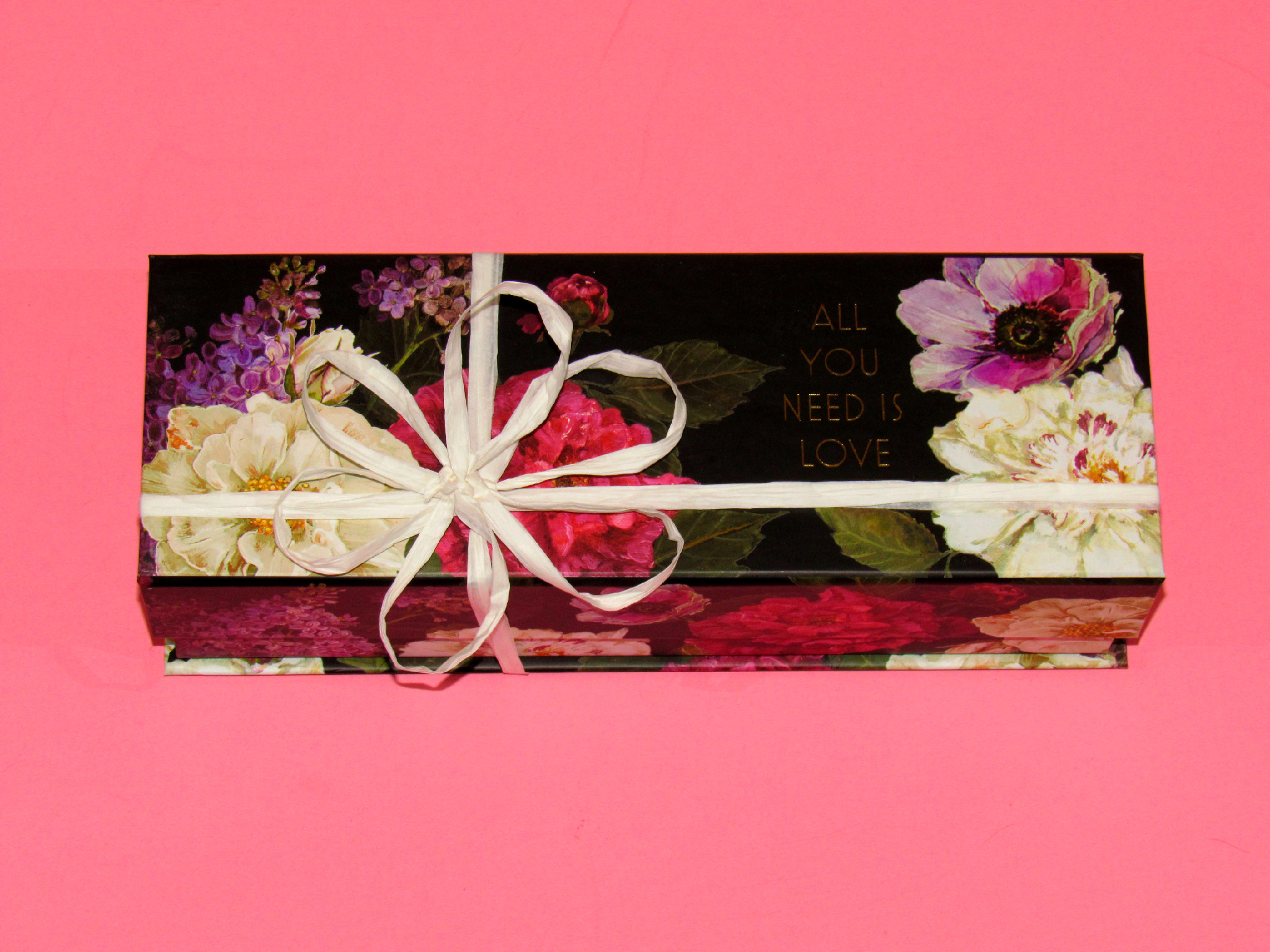 That’s it. Shut your box, tie some ribbon on and you’re good to go! I made a little flower out of raffia to jazz up my box a little. You basically tie a bow, then another bow, then a third and space out the petals until it looks even. You can check out my Instagram video on it here. (It’s fast, I apologize. My first attempt at a time lapse video).
