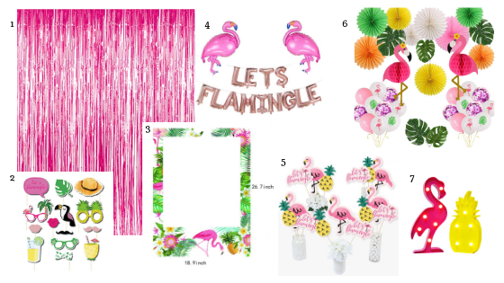 5. Party Like a Pineapple Tropical Centerpiece Sticks – This 15 piece set of party sticks is perfect table decor for your flamingle party. There is a “let’s flamingle” sign, a flamingo and a pineapple. Prep your tables with these cute tropical sticks in flowers or pineapples for a super creative centerpiece!