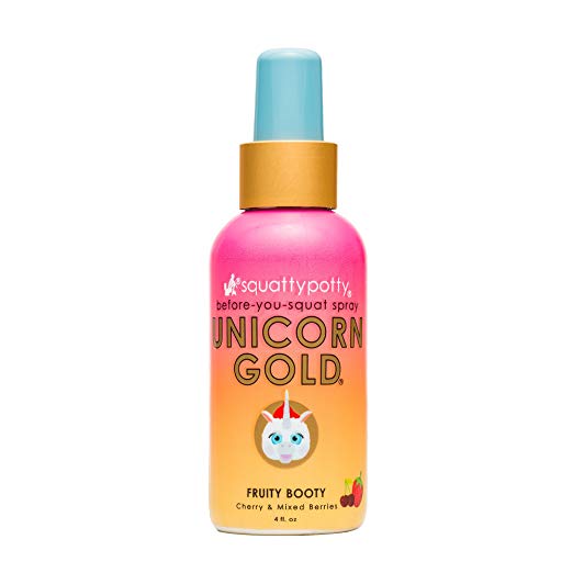 Unicorn Gold is similar to Poo-Potpurri, in case you’re looking for a comparison. There are different scents like: Fruity Booty, Citrus Squeeze, and Mystic Forest. This bottle is technically called toilet spray, you spray it in your bathroom to cover unpleasant smells. And who doesn’t love a unicorn?!